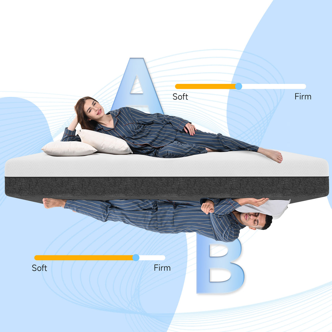 Our mattress is designed with a two-layer full foam system with a top layer of 4cm gel memory foam that is naturally antimicrobial and resistant to allergens, mold, bacteria and dust mite, and 16cm (or 11cm for the whole thickness of 15cm) sturdy support foam to ensure great comfort and more durability.