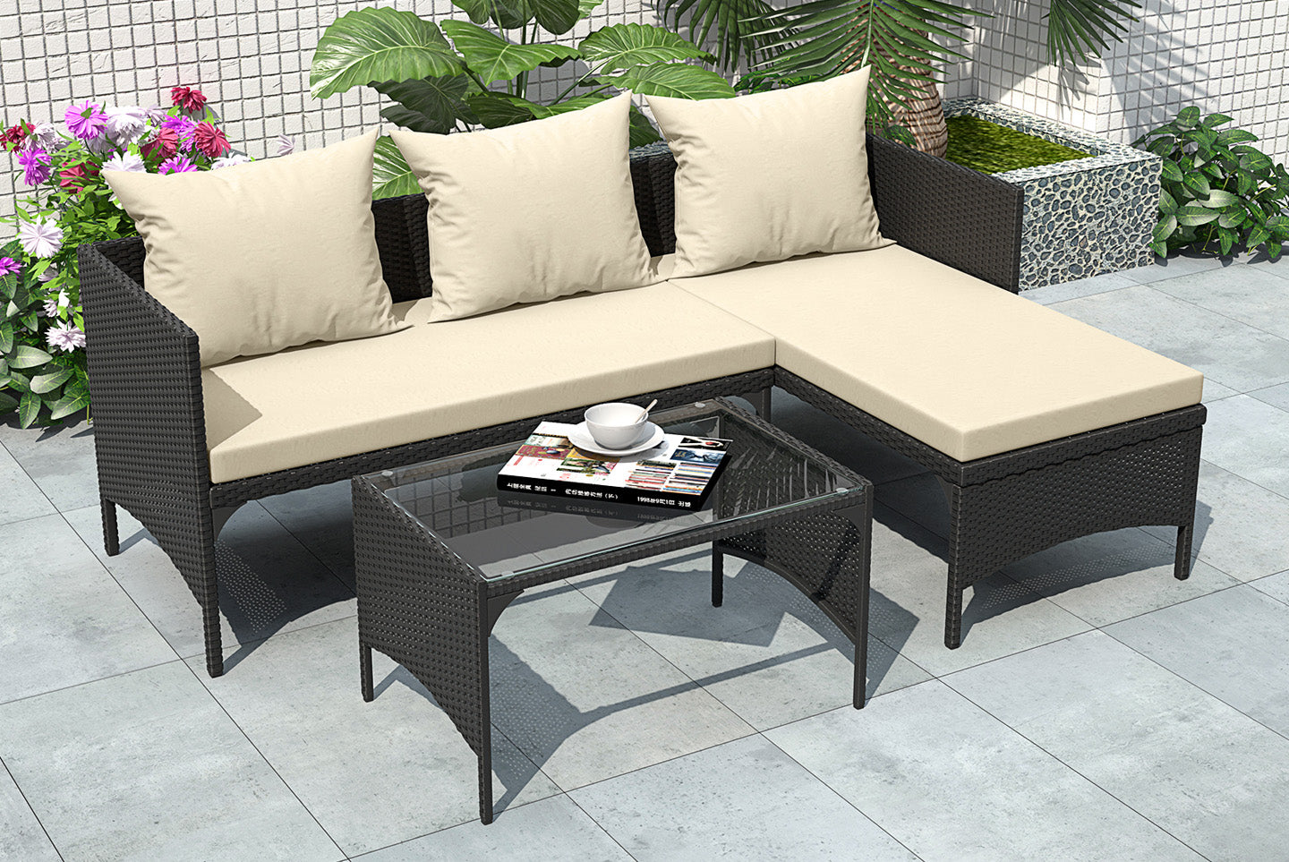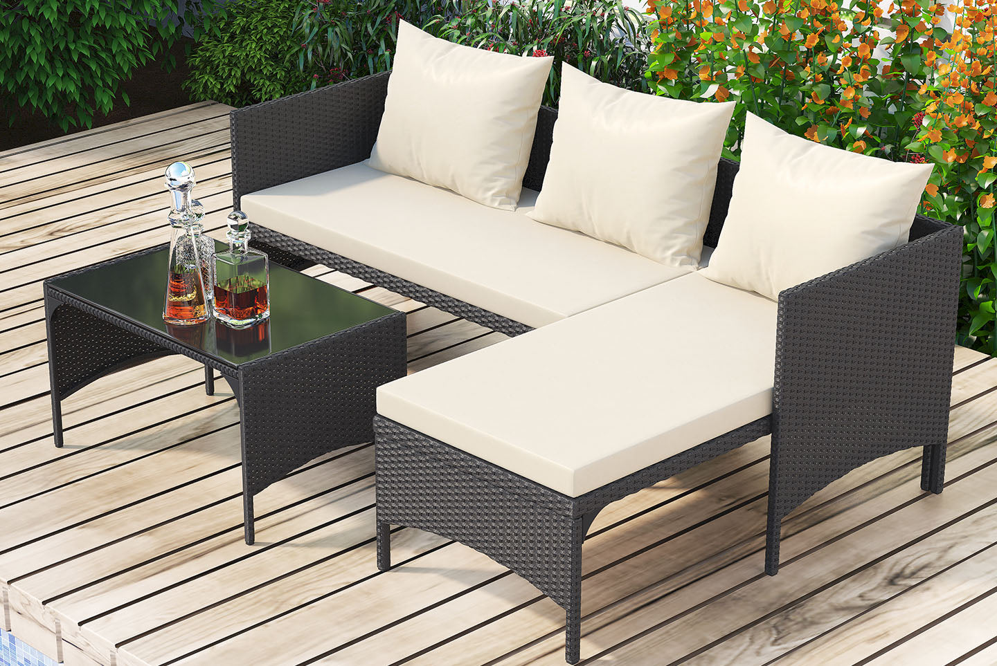 3-Piece Outdoor Furniture Set Rattan Garden Furniture, Chaise Conversation Sets for Patio