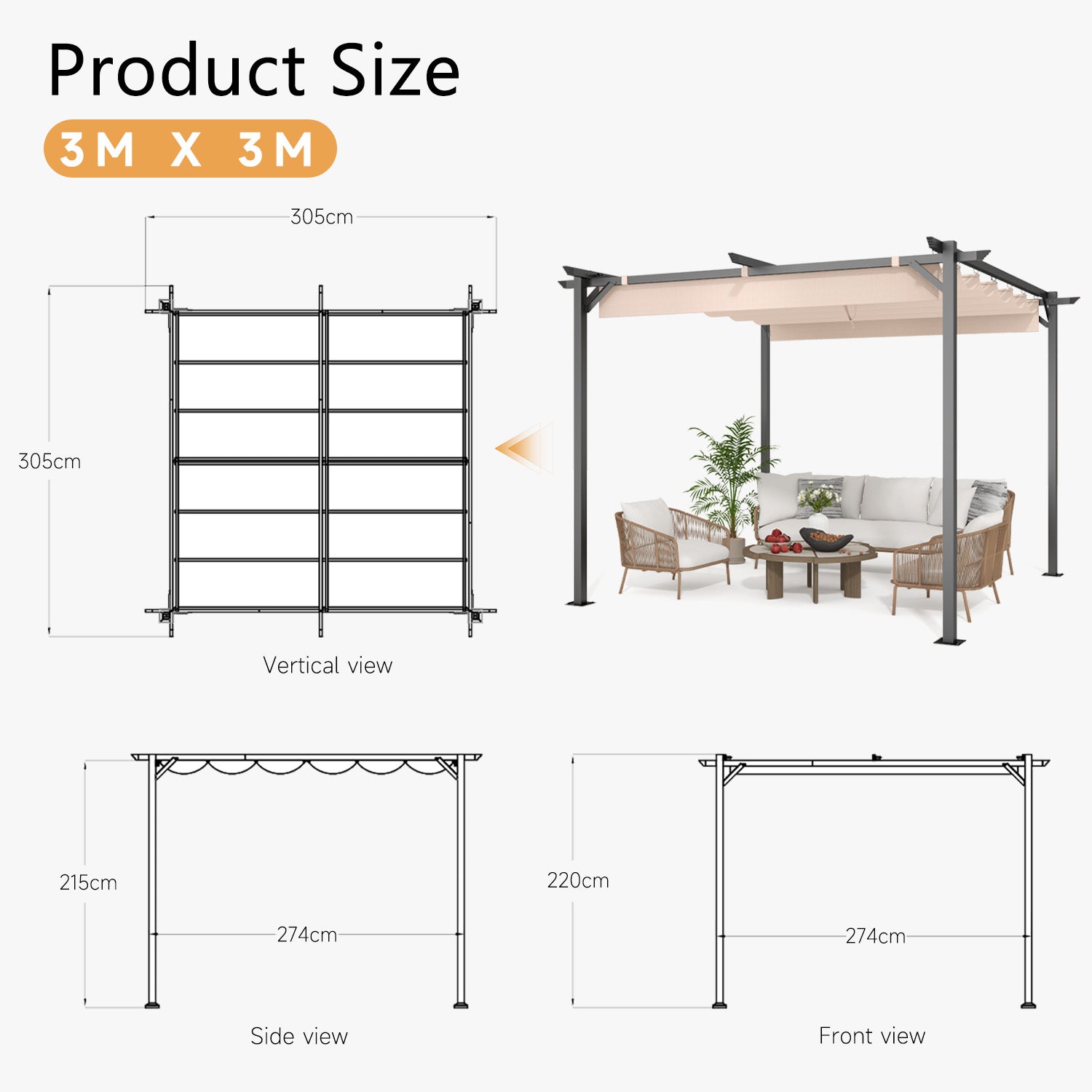 - Overall Size: 305cm x 305cm x 220cm