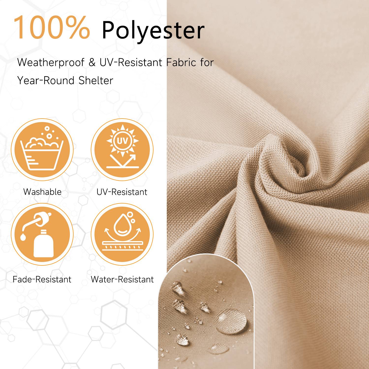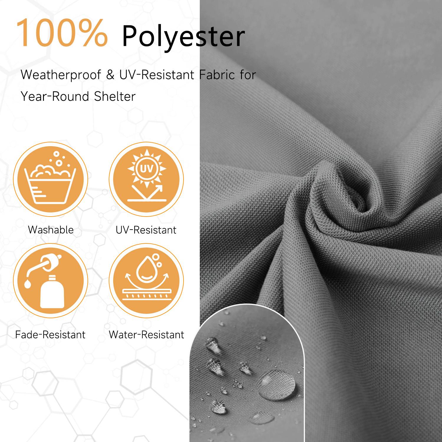 The canopy is made of 100% polyester fabric, which is waterproof, UV-resistant, and fade resistant.