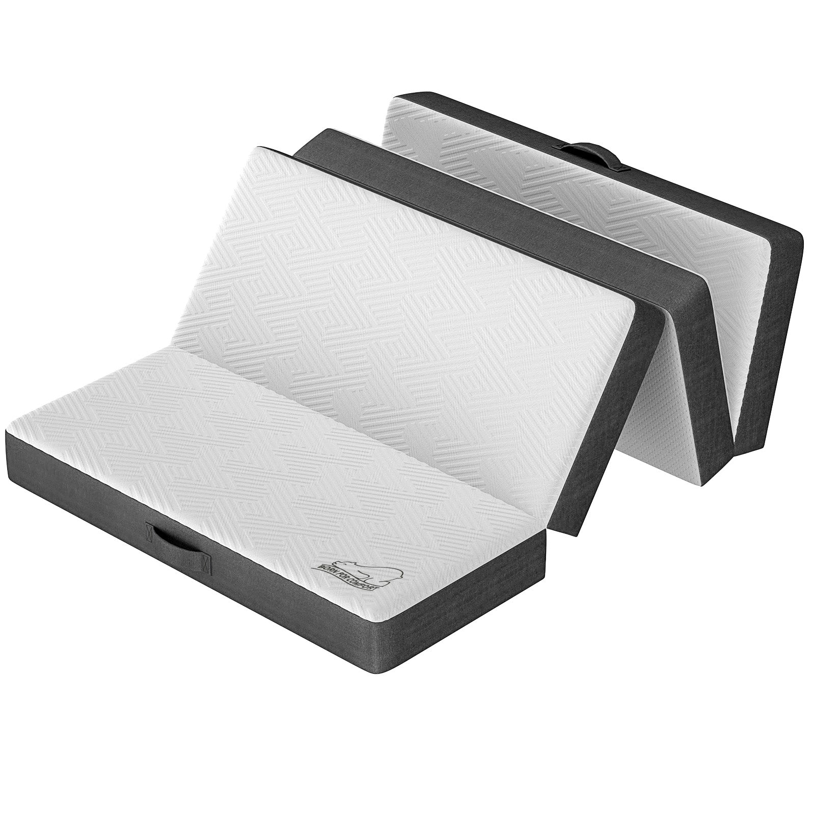 Folding Floor Mattress 4 Fold Memory Foam Mattress Futon Bed with Removable Cover, Grey+White