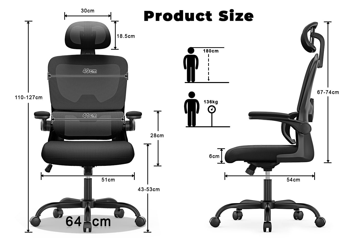 Highly elastic, wear-resistant, and breathable polyester mesh office chair, promotes good air circulation, wicks away sweat and moisture, and gives you a cool feeling and a comfortable sitting posture, allowing you to work more focused and relaxed.