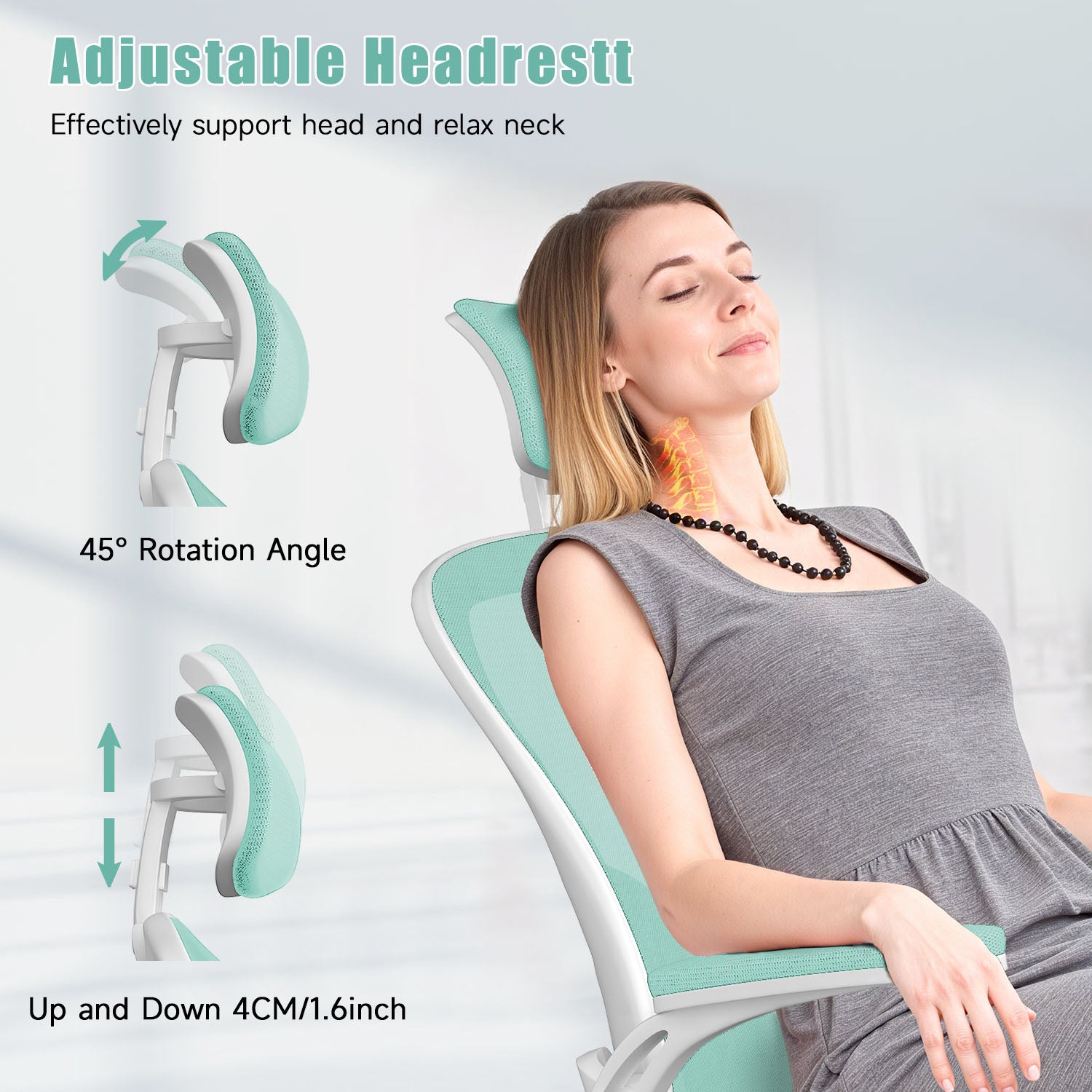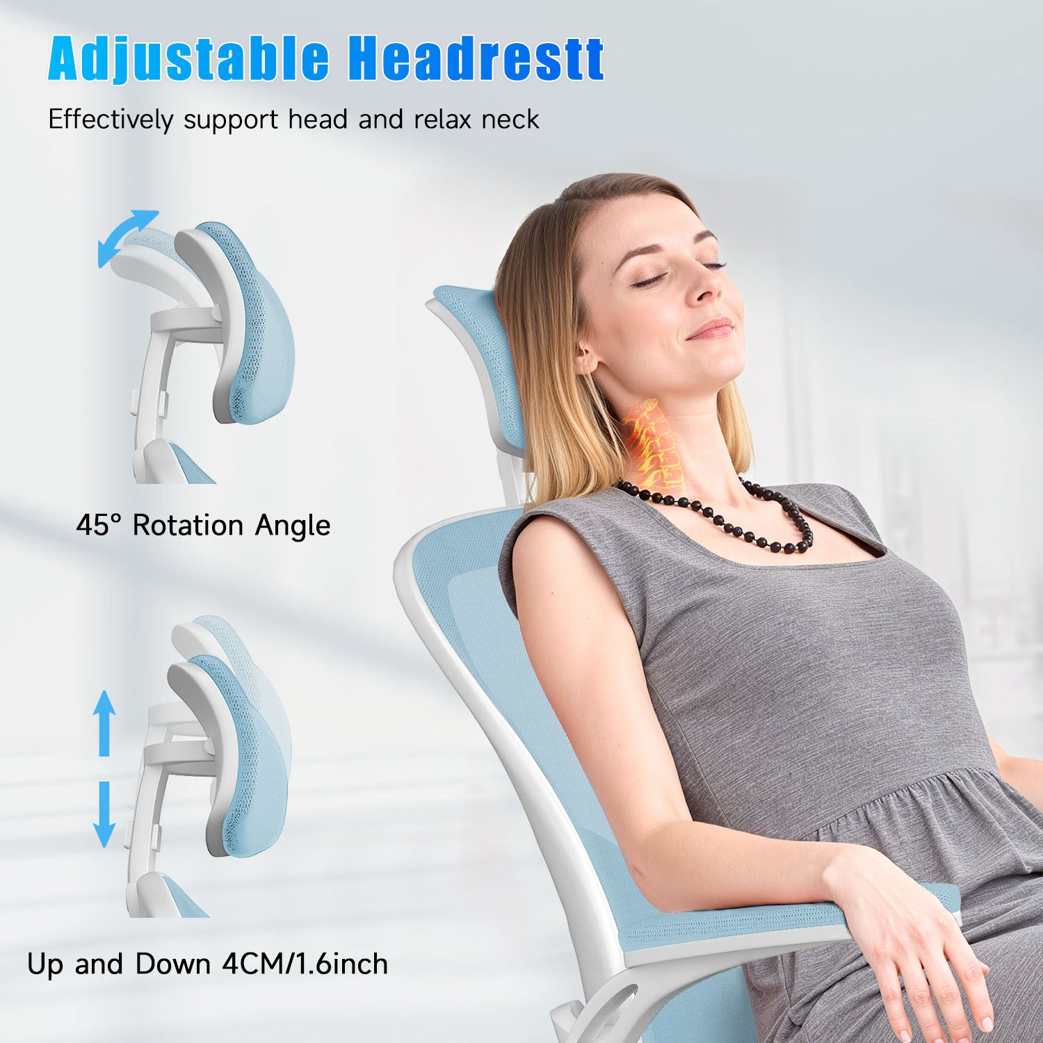 Move the headrest up and down to support your neck and head, reducing neck and shoulder soreness during sedentary work.